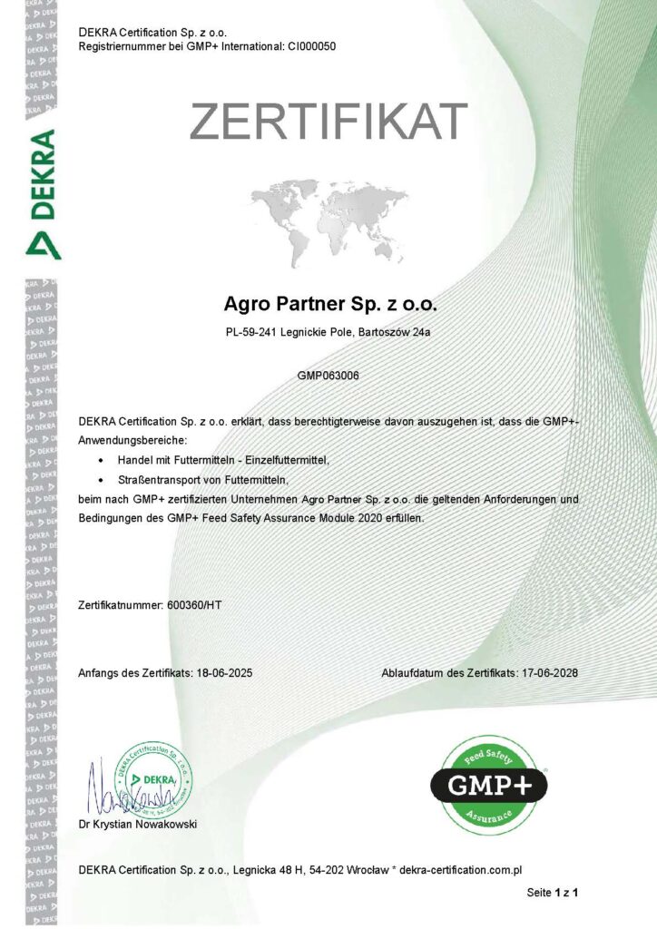 Unsere Zertifikate Bestätigte Qualität und Konformität mit den Anforderungen der Landwirtschaftsbranche. Haben Sie Fragen? Möchten Sie eine Zusammenarbeit beginnen? Kontaktieren Sie uns – wir beraten Sie, erstellen ein Angebot und helfen Ihnen, die beste Lösung für Ihren Betrieb zu finden. Kontaktieren Sie uns